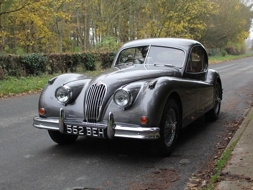 This beautiful Jaguar XK140 FHC is one of the rarer home market UK RHD examples. 562 BEH retains its original factory colour of Pearl Grey, original registration mark and is a matching numbers car retaining its original factory supplied engine. The XK was manufactured on the 30th October 1956, was distributed by C. H Truman in Nottingham and supplied new by Byatts of Fenton in Stoke on Trent. 562 BEH was purchased new by the Director of Blythe Colour Works Ltd, W R Wildblood, a company producing colour for the pottery industry.