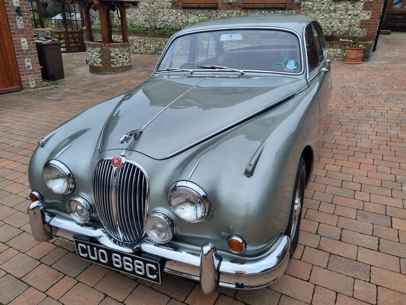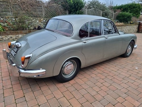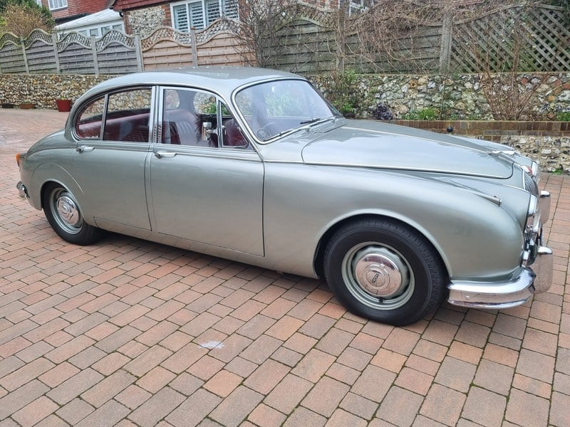 For sale, a very original 3. 4 litre Jaguar Mark 2 in grey with red leather interior built in December 1964. This is a matching numbers car with original body and engine and still retains its Moss gearbox. The car was first registered in Sidmouth, Devon and has had 5 UK owners (including myself), all fully documented in the accompanying history file. I have owned the car for 14 years and am selling the car due to lack of use. The car is being sold with 12 months MOT.