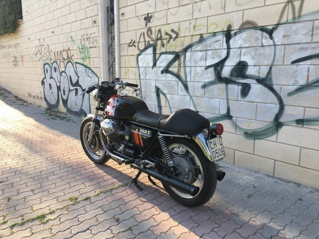 This was the last Moto Guzzi model with the frame made from chrome-molybdenum steel. That frame is finished in black and shows here in fine fettle, with no damage or issues we could see.