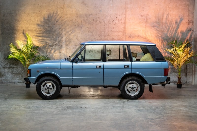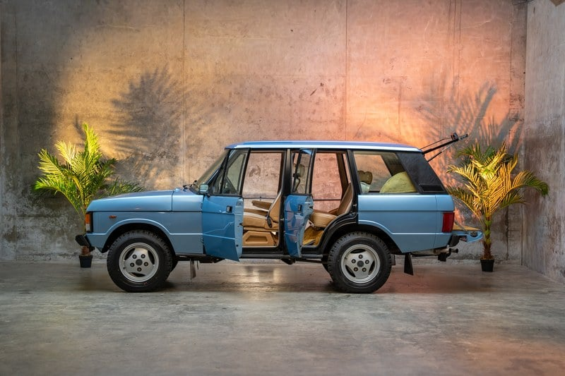 Due to the inherit susceptibility of single-stage light blue metallic paints to fading and peeling, the Range Rover was re-painted some years ago, but it is a good quality job and as such, isn’t immediately noticeable. The car is totally rust free with only a smattering of surface corrosion on underside and engine components. It has never been welded/ repaired or tarnished with underseal or any other thick coatings. Thanks to this, all of the original metalwork and components underneath are still visible – extremely rare on a classic Range Rover. When we purchased the car, we immediately sent it to a classic Land Rover specialist for checking over, they were amazed by the originality of it and ensured us it should be left completely as-is. In-fact, their only note was for us to purchase and fit the correct Blockley tyres for it, which we now have. We would be more than happy to pass on their details to any potential buyer in order to discuss the car and all of its original details.