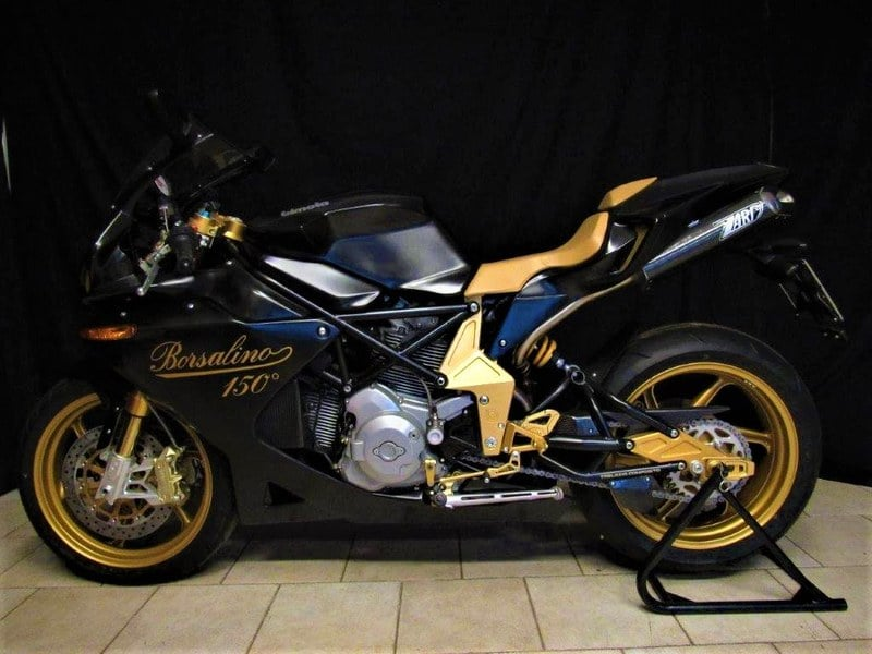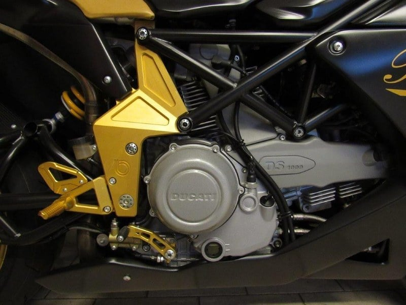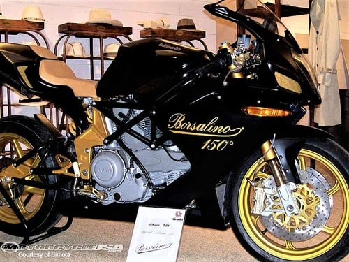 House company in 2007 to celebrate 150 years of being in Business, they went to the small boutique company of Bimota, based in Rimini, Italy, and requested they make a special bike for them to celebrate and show in their shops… I first saw a photo on the internet of this bike in Harrods, London, some 12 years ago… it took me 5 years to find it… and another 3 years to convince the italian owner to sell it to me…. she was showed in Harrods, then a shop in Paris, France, then in Milan, Italy… before returning to the factory and being snapped up by a famed Italian collector of the marque…… I showed her once at the Manchester bike show.. I’ve never even sat on the bike… the battery has never been fitted, indeed the acid is still in the plastic bottles… comes with rear paddock stand and bimota bike cover and tool kit, 2 keys, UK registration document, Private plate DB0R BOR and the EuroCoC (certificate of corporation) so she can more easily be registered throughout Europe and beyond…. 1, 000cc Ducati Multistrada/ hypermotard air cooled desmo engine, Brembo brakes and calipers and masters, italian calf leather seat, Ohlins front and rear suspension…. Theres only One… this is the One…. great for display or recommission and ride…. I swapped out the grey cambelt covers for Bimota carbon fibre units and opended up the clutch with a bimota CF slash cut cover and gold pressure plate… all original parts obviously stored away…. Bike comes complete with a plethora of Borsalino Related items, black and silver Italian Borsalino Watch with Swiss Movement and many many more items , many from the original display when the bike was first shown in Harrods in the Borsalino Fashion section of the store,