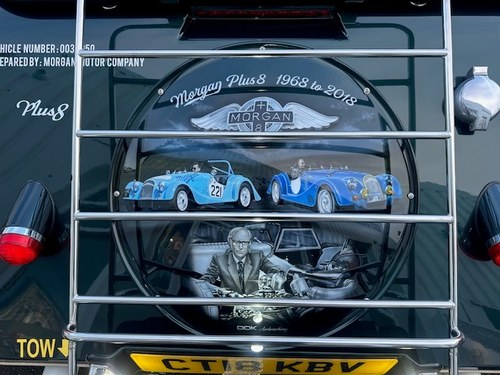 This car, is number 3 of the 50 and what makes this car even more rare is the artwork on the rear spare wheel cover. It depicts a memorial to the Plus 8, you can see from the photos that there is the car that started it all, MMC 11, the speedster version of the Plus 8 and Peter Morgan. The art work is by award winning DDK airbrushing.